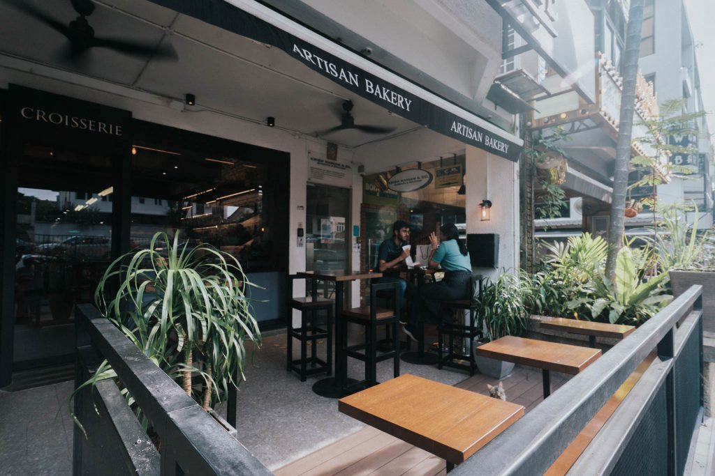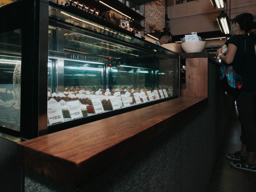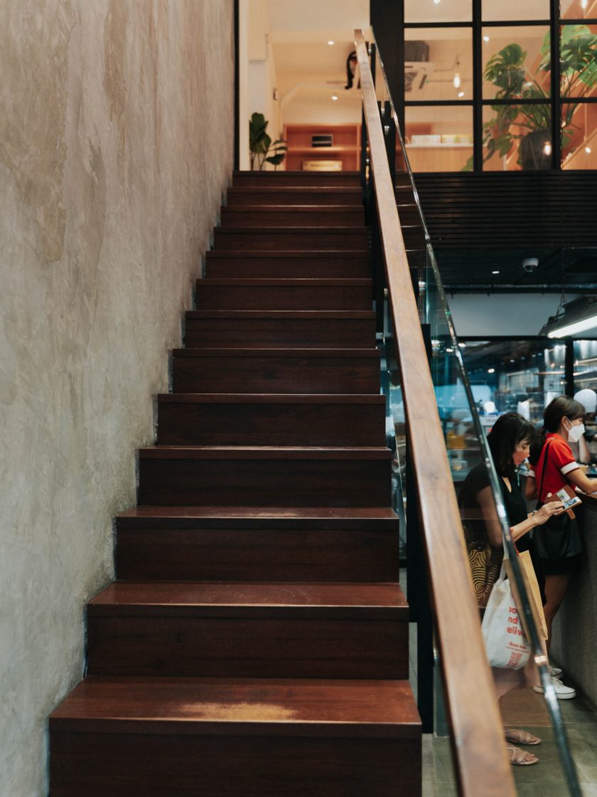 Fresh loaves and bakery treats are presented alongside 5 vital materials at this beautiful bakery in Bukit Damansara, Kuala Lumpur, by Jomeco.