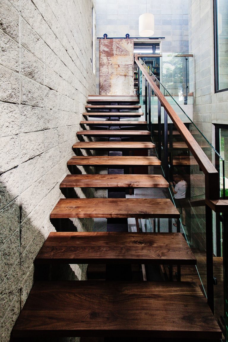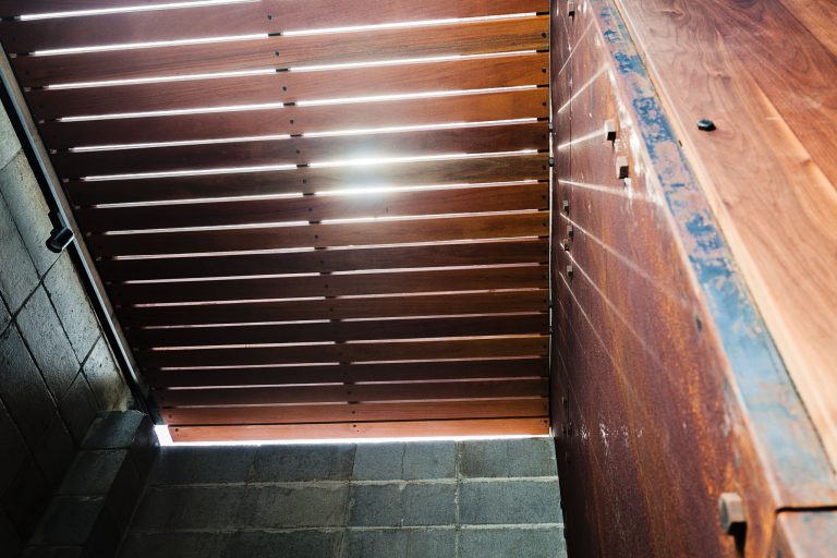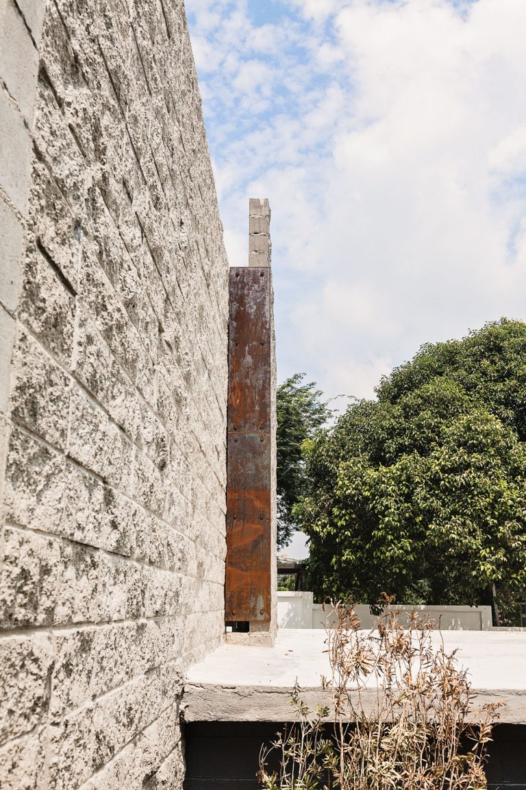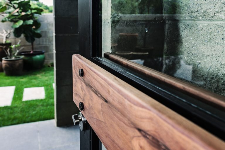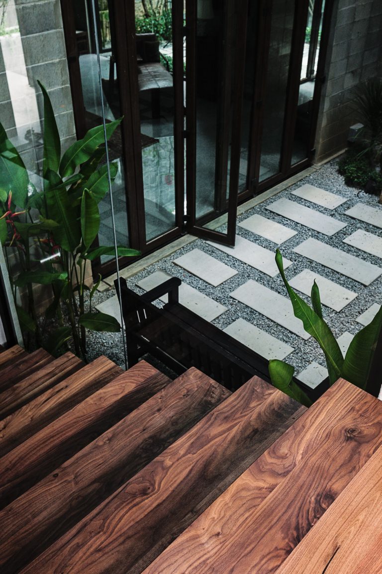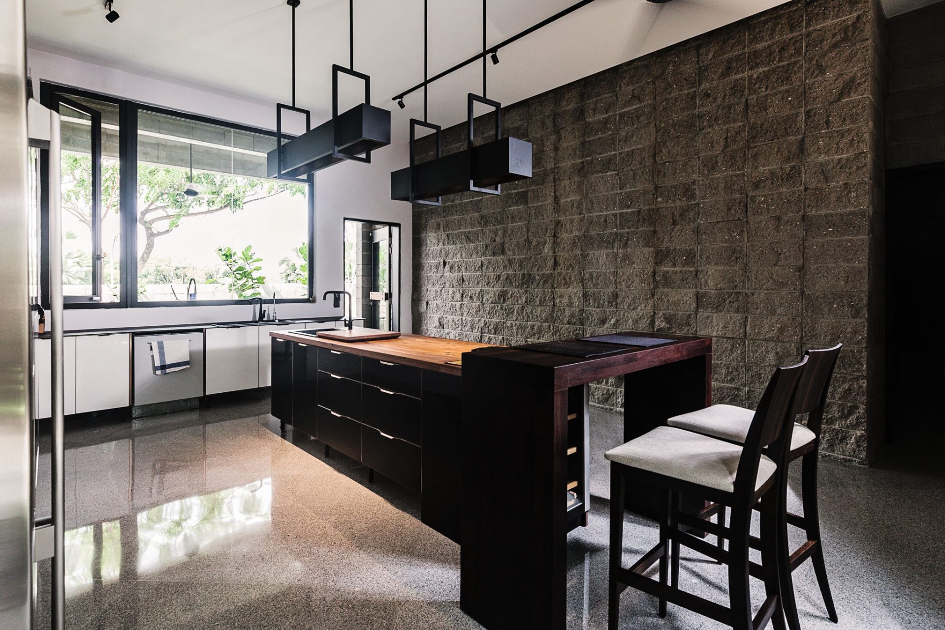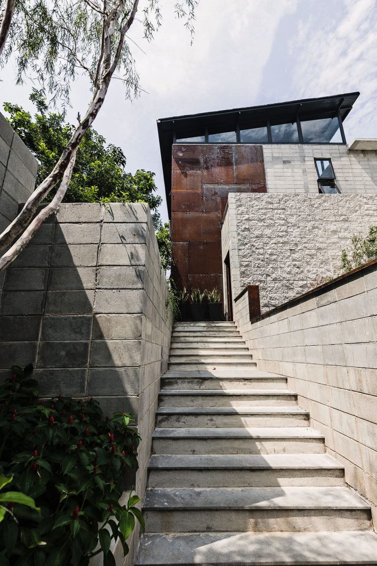 This earthy bungalow rocks with its mix of metal, stone, glass and wood design elements. Its hard to pinpoint just one eye-catching corner of this bungalow because it is layered with different styles, textures and materials throughout interior and exterior, evoking a very relax, warm and welcoming feel. But the most impressive of the design touches in this house is arguably the rustic metal wall panelling & doors, which were left out to rust and then sealed once there were the right amount of rust before installation.