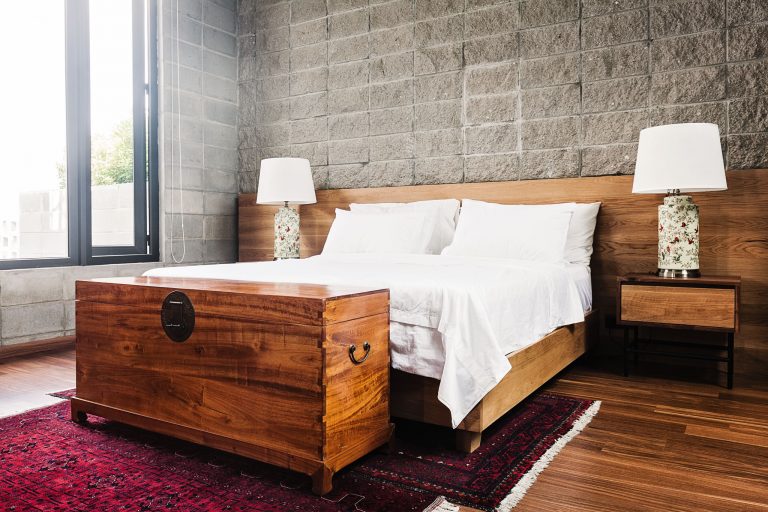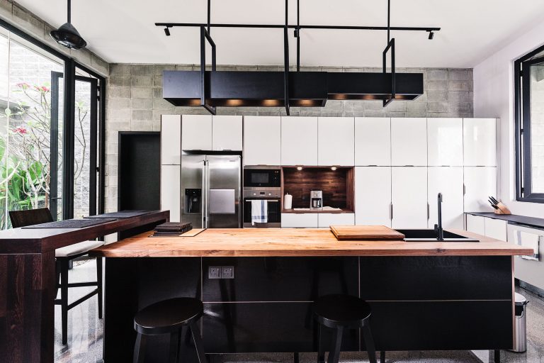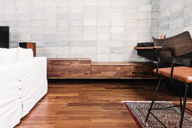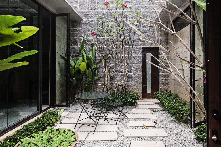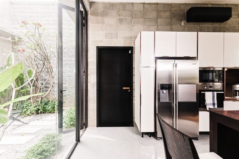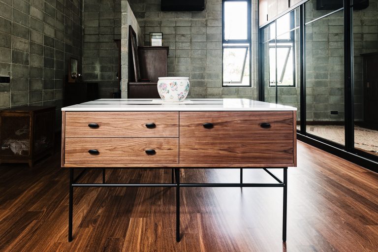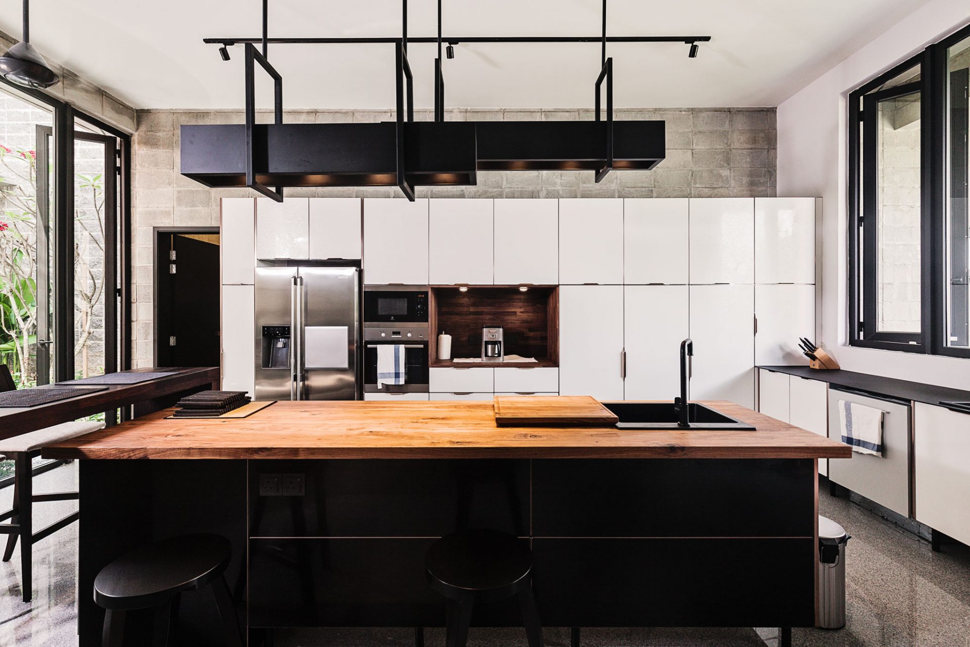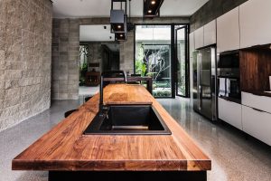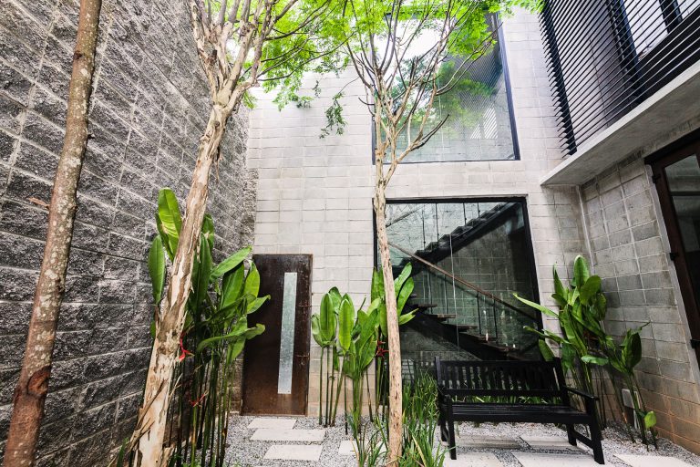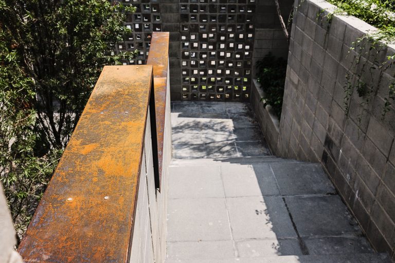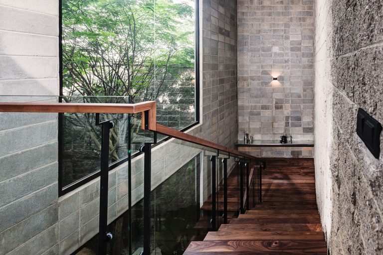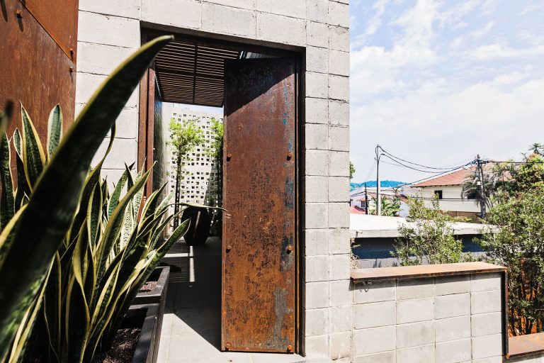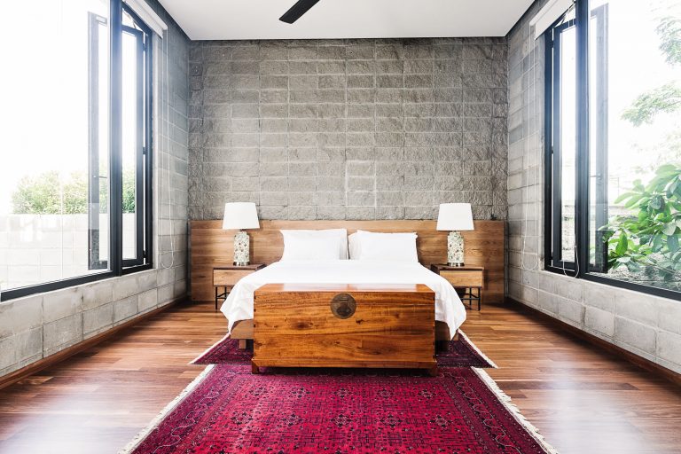 This earthy bungalow rocks with its mix of metal, stone, glass and wood design elements. Its hard to pinpoint just one eye-catching corner of this bungalow because it is layered with different styles, textures and materials throughout interior and exterior, evoking a very relax, warm and welcoming feel. But the most impressive of the design touches in this house is arguably the rustic metal wall panelling & doors, which were left out to rust and then sealed once there were the right amount of rust before installation.