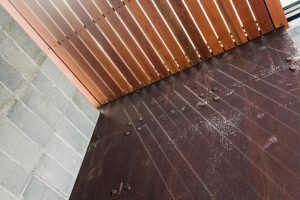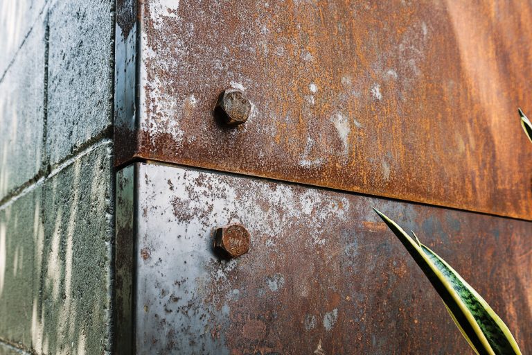 The WOW factor- rusted metal delivers both warm and cool properties: warm by its rusty,reddish hue and rough texture; cool because of its hard surface and cold steel.